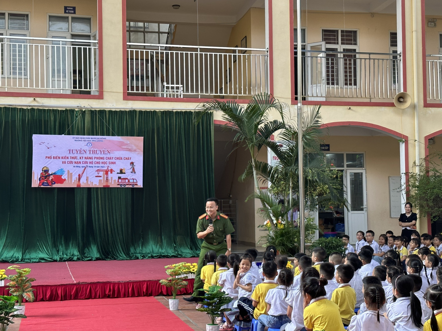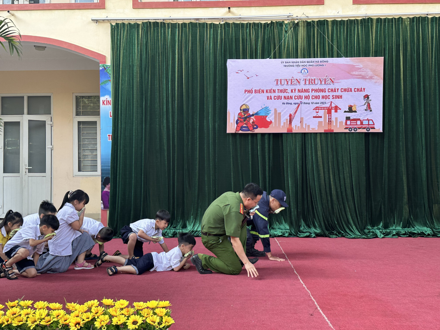 Sáng ngày 18/10/2023 phòng Cảnh sát PCCC quận Hà Đông đã phối hợp với trường TH Phú Lương I tổ chức tuyên truyền về công tác phòng cháy, chữa cháy, thoát hiểm cho cán bộ, giáo viên, nhân viên và học sinh toàn trường khi gặp tình huống cháy nổ.