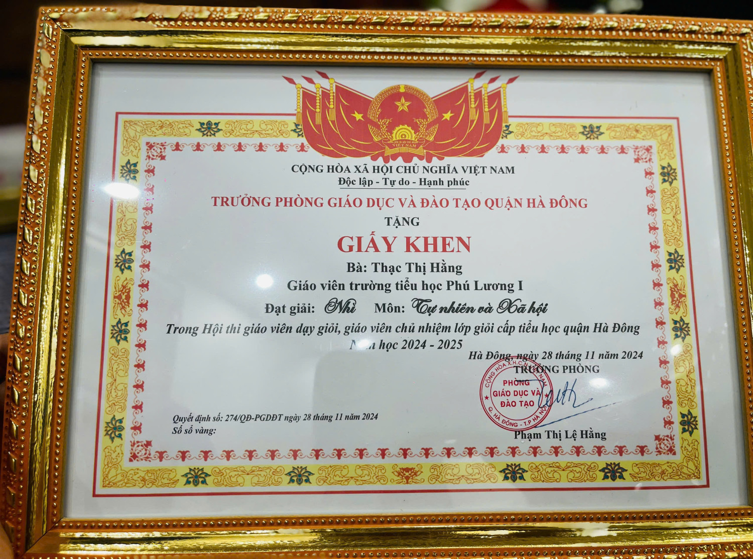 Chúc mừng các Cô giáo Xinh đẹp và tài năng của Trường TH Phú Lương I đã đạt giải cao trong Hội thi GV dạy giỏi và GVCN Giỏi cấp Quận.