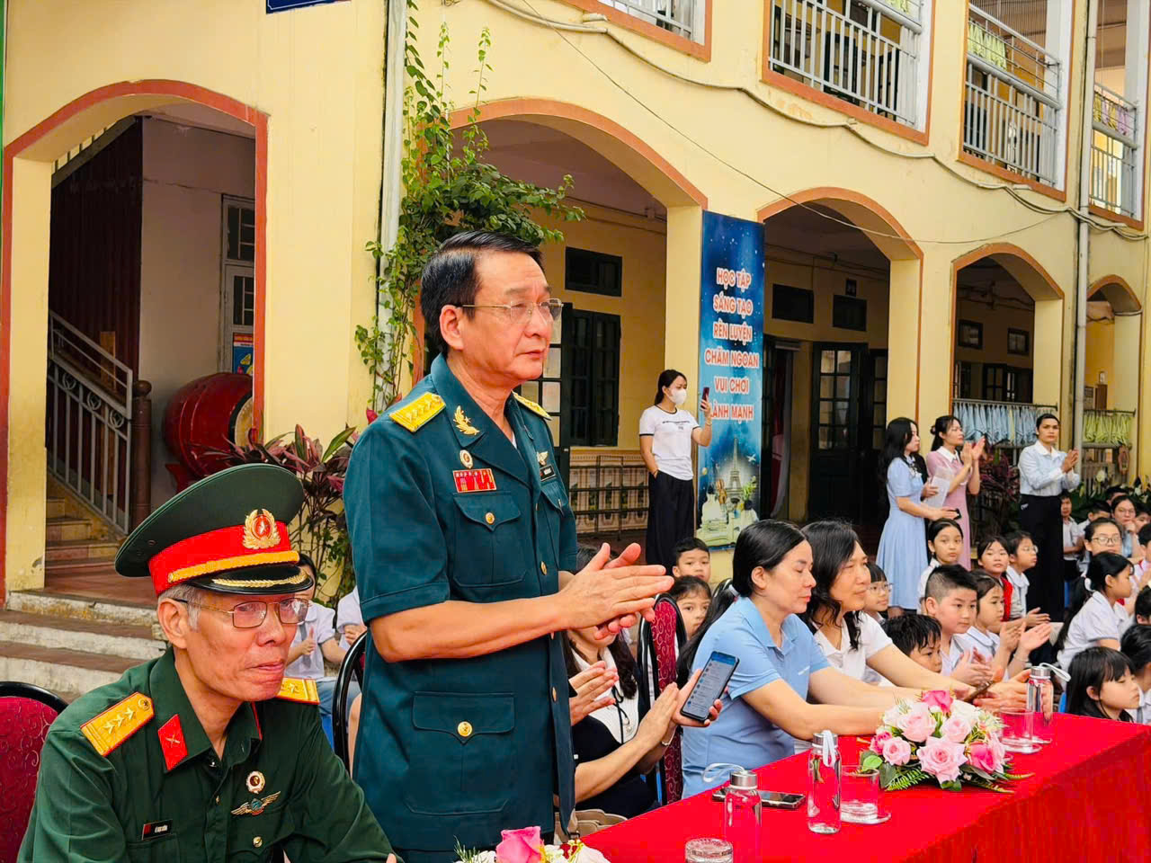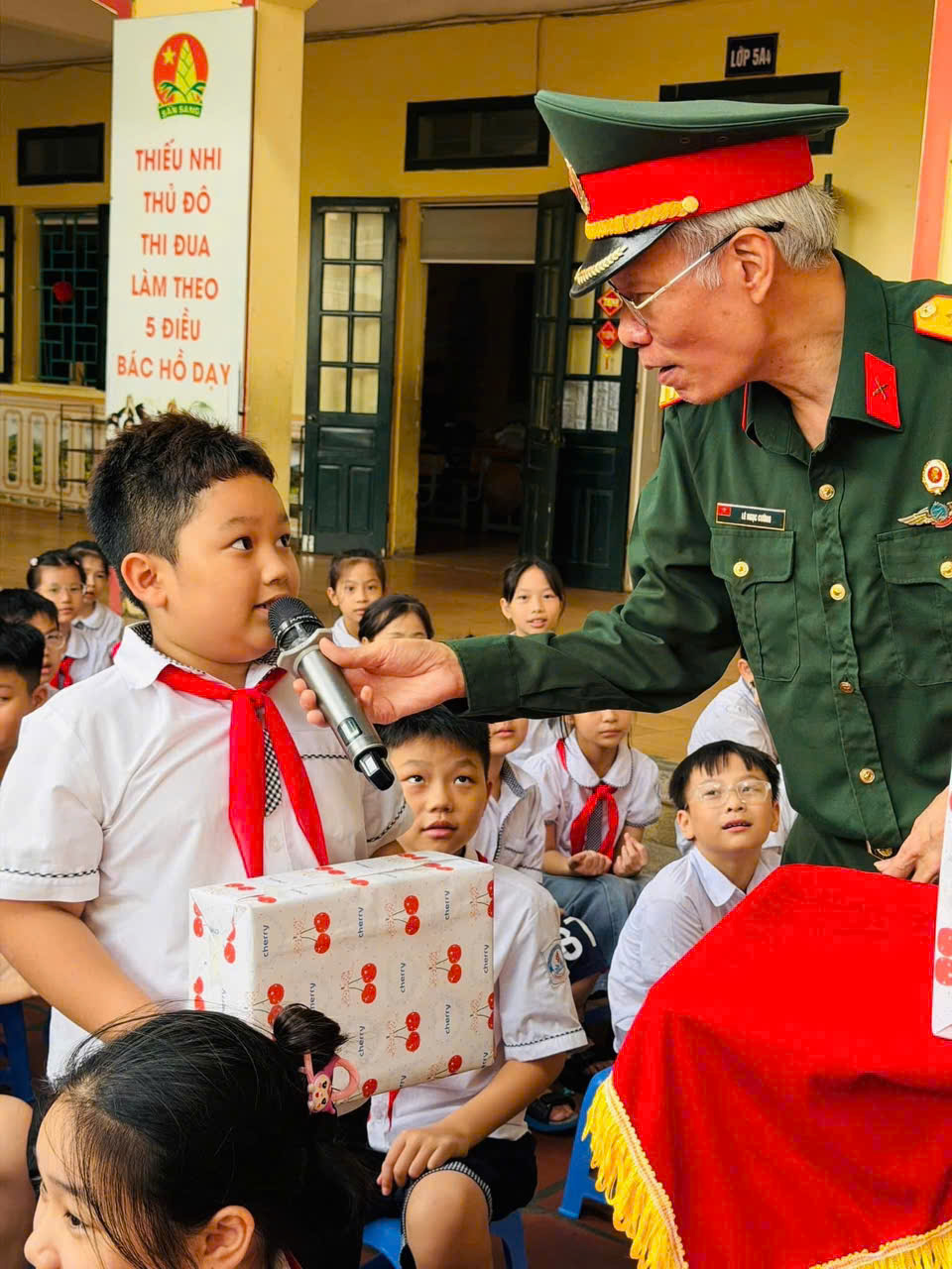 ☘️Tiếp nối chương trình là phần chia sẻ của bác Thượng tá Lê Ngọc Cường – báo cáo viên Hội Cựu Chiến binh, với những câu chuyện chân thực, xúc động về chặng đường đấu tranh giải phóng dân tộc, giúp các em hiểu hơn về giá trị của hòa bình hôm nay.