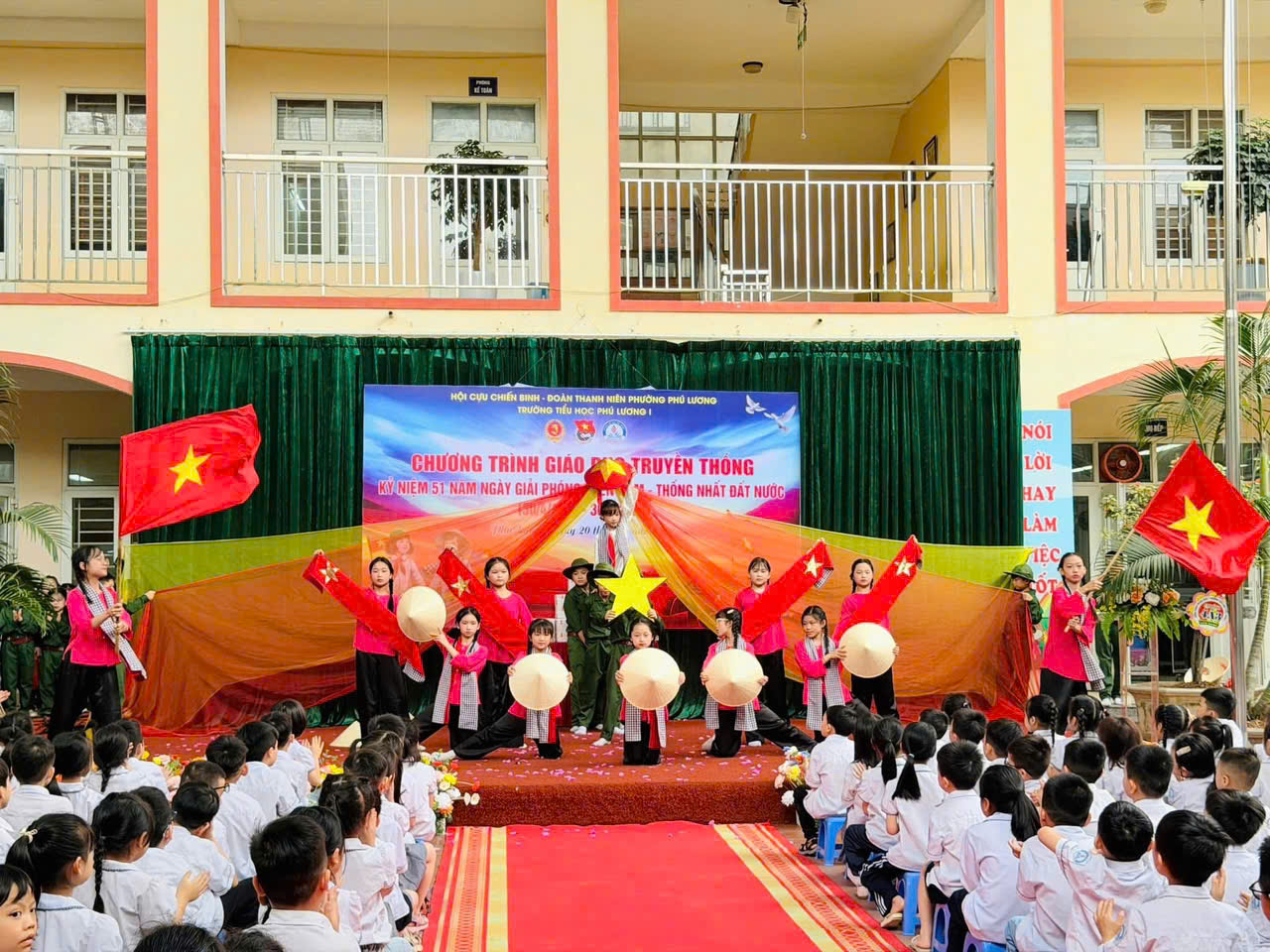 CHƯƠNG TRÌNH GIÁO DỤC TRUYỀN THỐNG Nhân dịp Kỷ niệm 51 năm Ngày Giải phóng miền Nam, thống nhất đất nước (30/4/1975 - 30/4/2026) 🍀 Sáng nay, Trường Tiểu học Phú Lương I đã phối hợp cùng với Hội cựu chiến binh - Đoàn thanh niên phường Phú Lương tổ chức Chương trình giáo dục truyền thống với nhiều nội dung ý nghĩa, góp phần giáo dục lòng yêu nước và niềm tự hào dân tộc cho các em học sinh. ☘️ Mở đầu chương trình là những tiết mục văn nghệ đặc sắc, giàu cảm xúc, tái hiện không khí hào hùng của những năm tháng lịch sử, để lại nhiều ấn tượng sâu sắc trong lòng thầy cô và các em học sinh. ☘️Tiếp nối chương trình là phần chia sẻ của bác Thượng tá Lê Ngọc Cường – báo cáo viên Hội Cựu Chiến binh, với những câu chuyện chân thực, xúc động về chặng đường đấu tranh giải phóng dân tộc, giúp các em hiểu hơn về giá trị của hòa bình hôm nay. ☘️ Thông qua chương trình, các em học sinh Trường Tiểu học Phú Lương I thêm tự hào về truyền thống vẻ vang của dân tộc, từ đó nâng cao ý thức học tập, rèn luyện, phấn đấu trở thành những công dân tốt, xứng đáng với sự hy sinh của các thế hệ cha anh đi trước. 🇻🇳✨