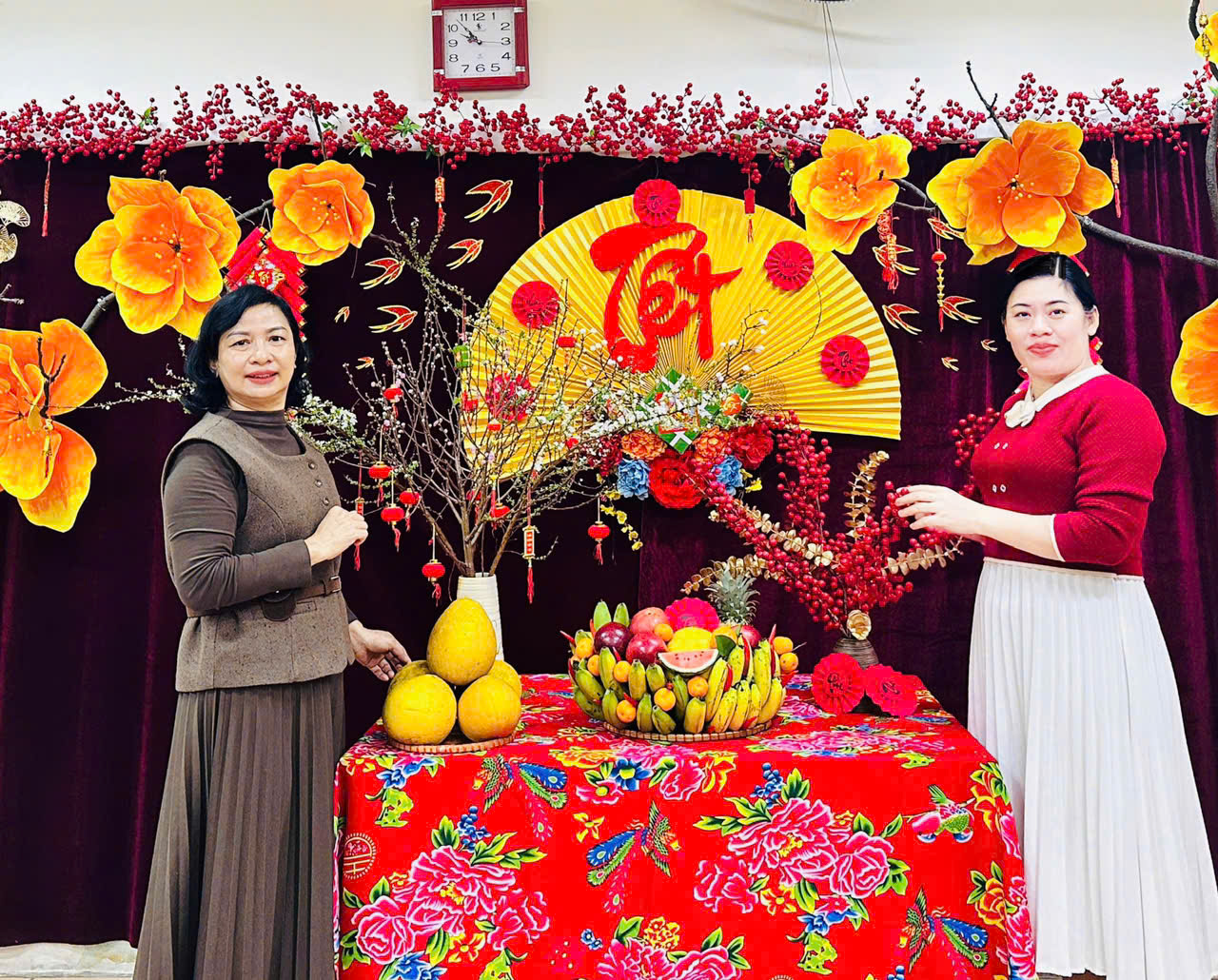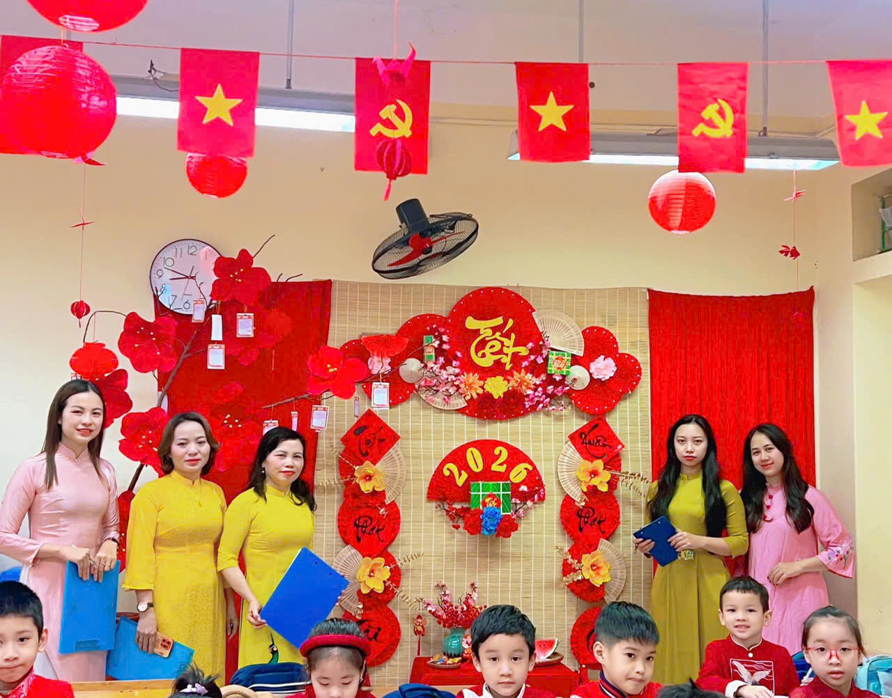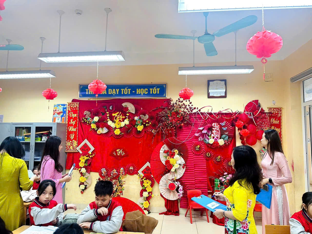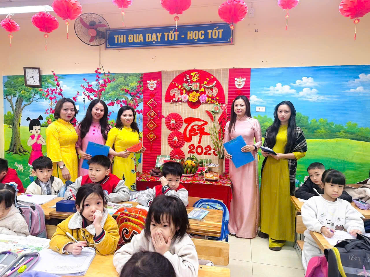 Mỗi lớp học là một không gian Xuân ngập tràn sắc màu, thể hiện sự sáng tạo, khéo léo và tinh thần đoàn kết của thầy cô, phụ huynh và các em học sinh. Những góc Xuân rực rỡ không chỉ mang đến không khí Tết ấm áp mà còn góp phần giáo dục các em về nét đẹp văn hóa truyền thống của dân tộc.