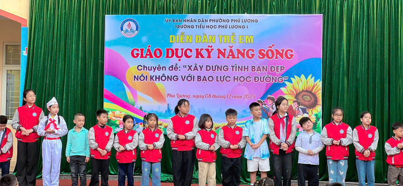 ✨ DIỄN ĐÀN TRẺ EM – GIÁO DỤC KỸ NĂNG SỐNG 🌼 XÂY DƯNG TÌNH BẠN ĐẸP - NÓI KHÔNG VỚI BẠO LỰC HỌC ĐƯỜNG✨ Sáng nay, ngày 8/12 Trường Tiểu học Phú Lương I long trọng tổ chức chương trình Giáo dục kỹ năng sống với chủ đề “Xây dựng tình bạn đẹp – Nói không với bạo lực học đường”, giúp các em học sinh hiểu hơn về giá trị của tình bạn, biết yêu thương, chia sẻ, biết nói lời tử tế, ứng xử văn minh,tôn trọng bạn bè và đặc biệt là nói KHÔNG với mọi hành vi bạo lực trong trường học.🩵