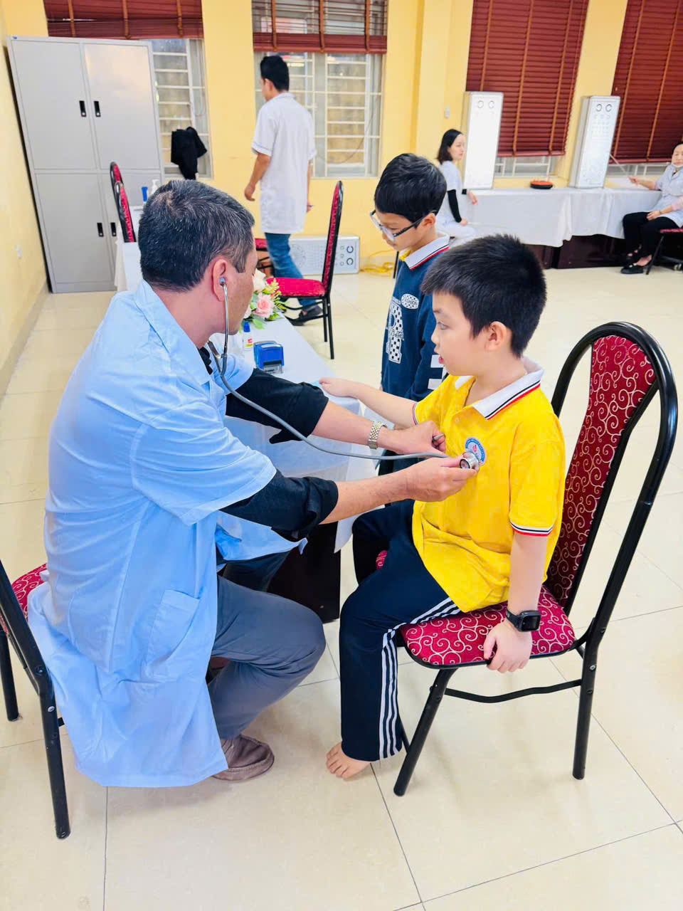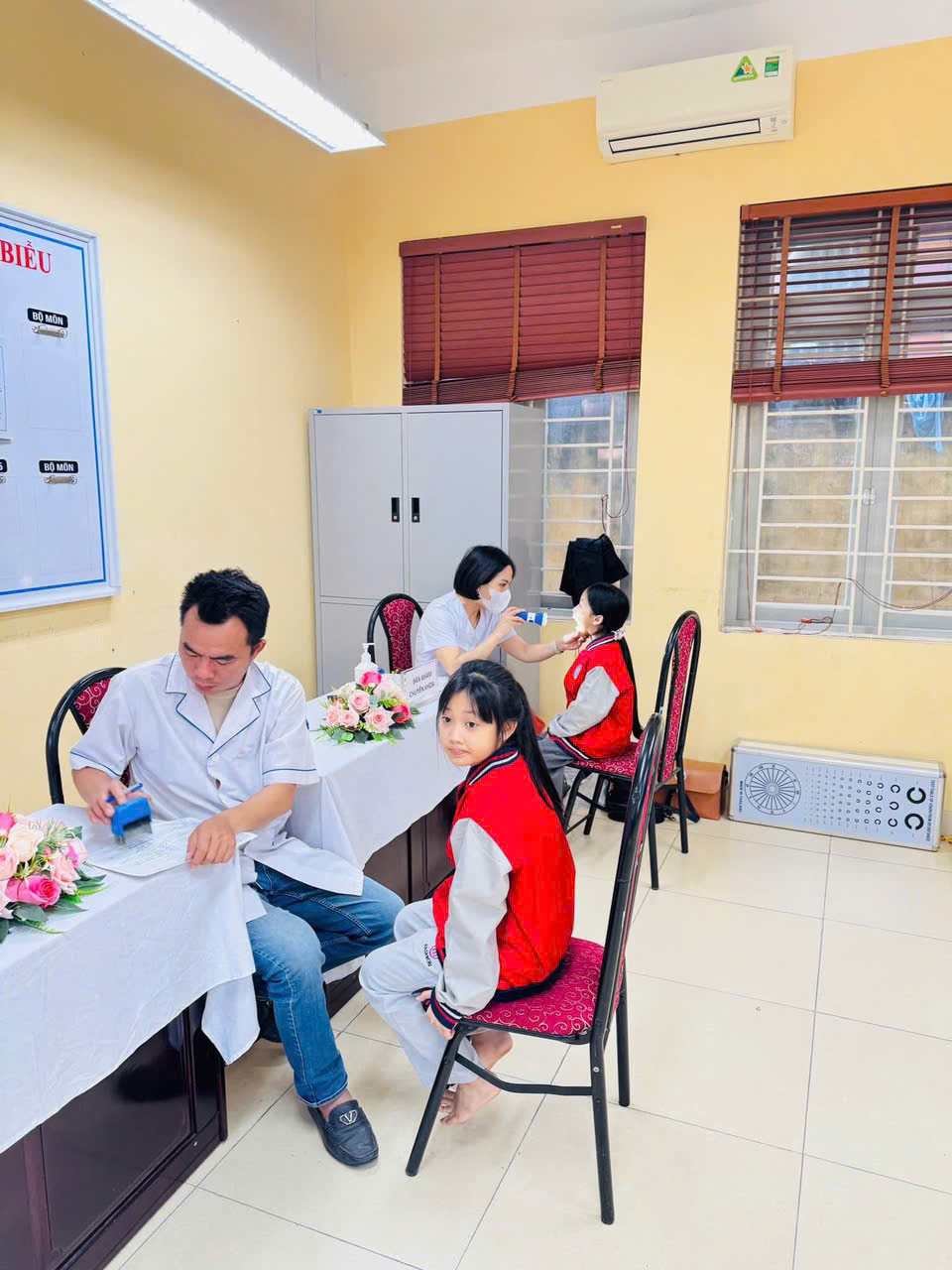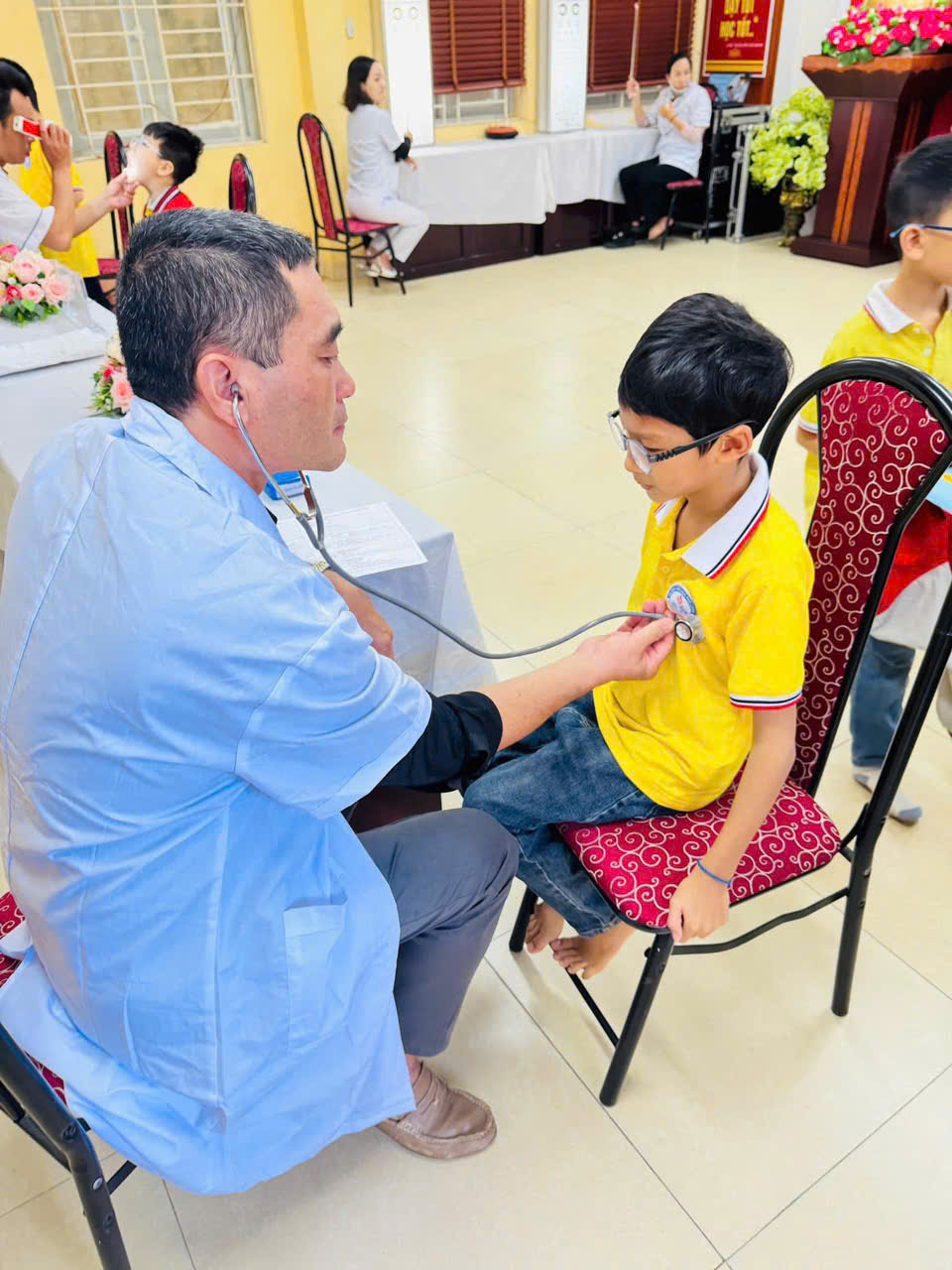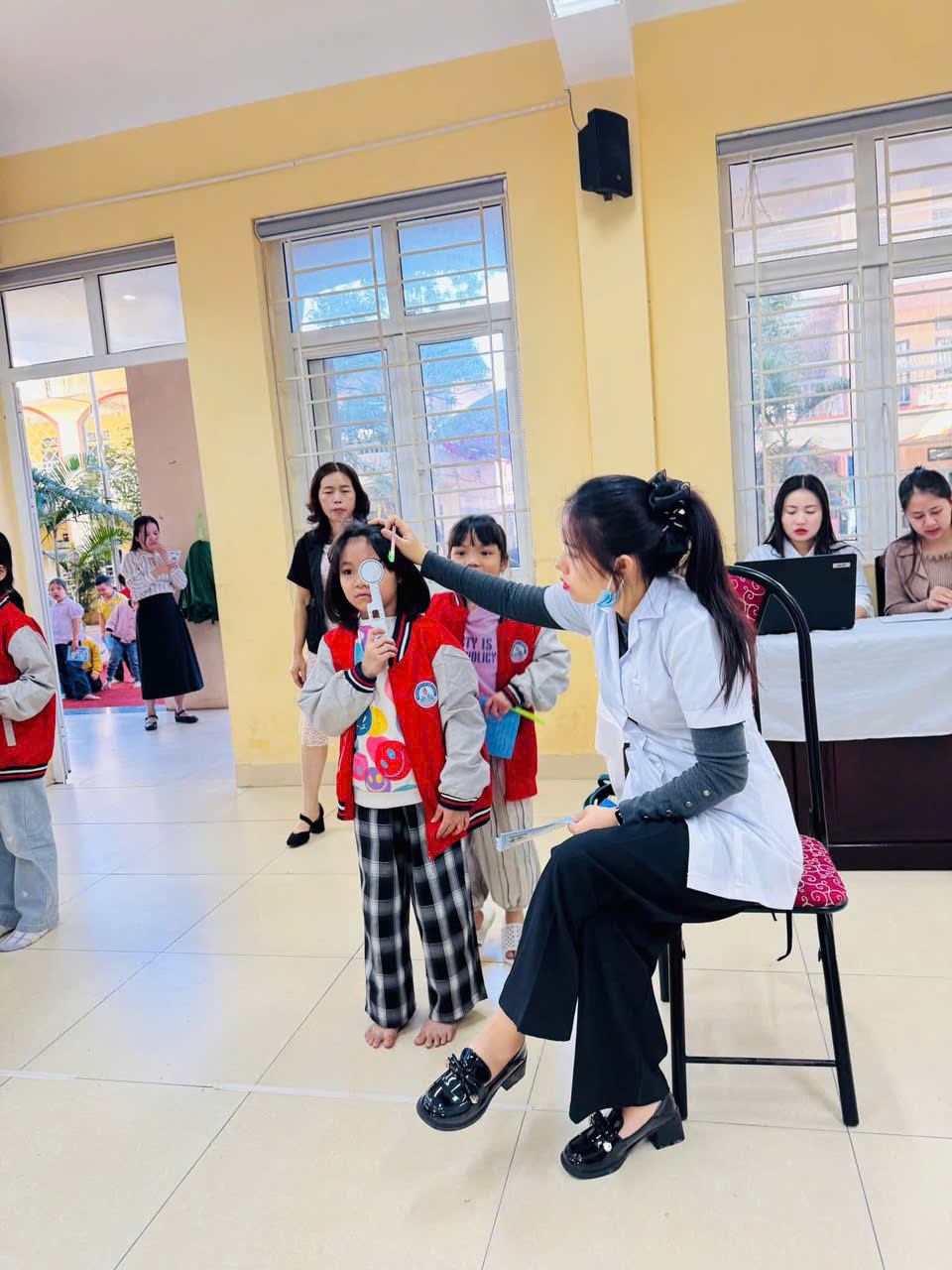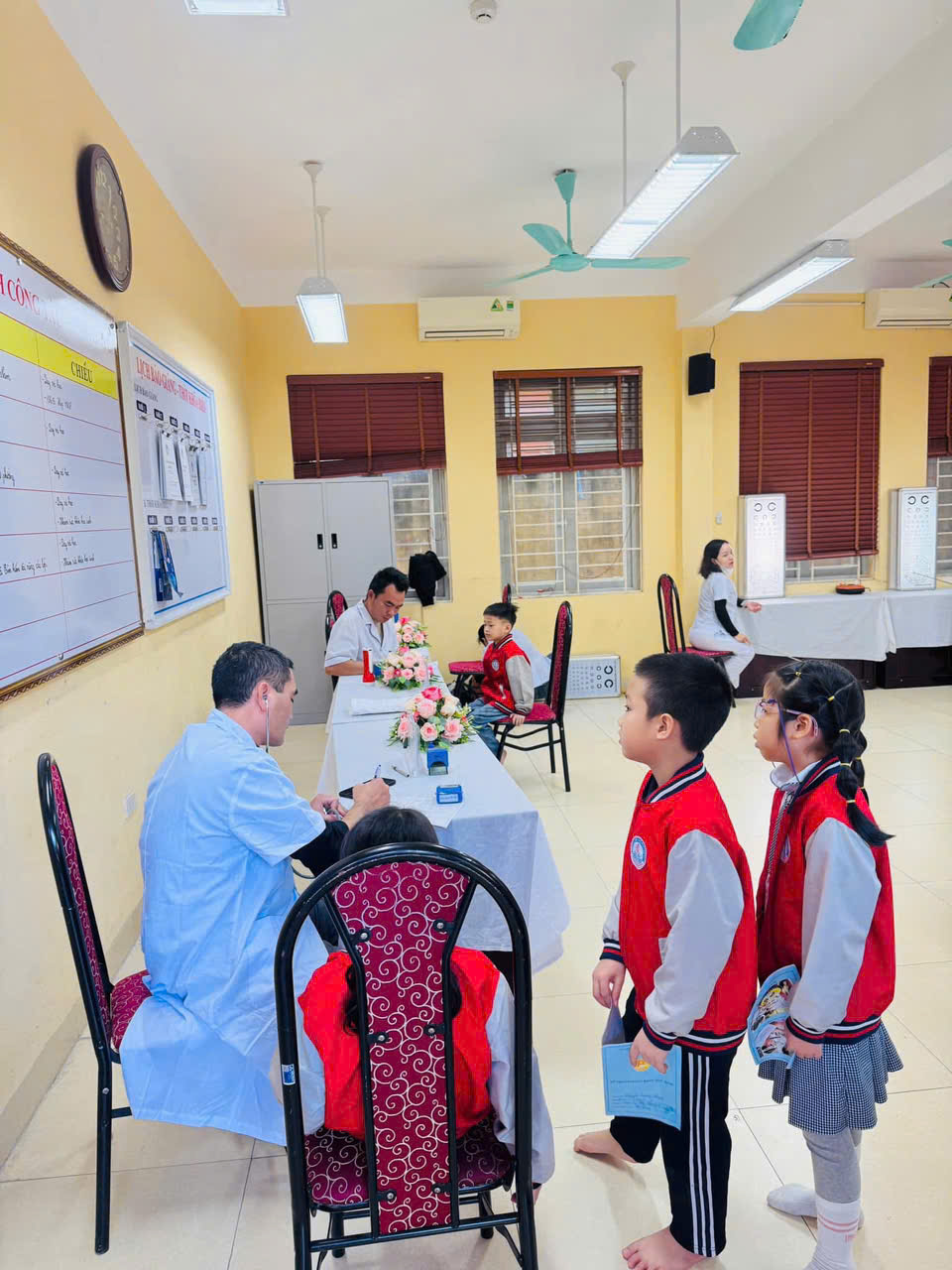 Các con được kiểm tra chiều cao, cân nặng, thị lực, răng miệng và sức khỏe tổng quát.