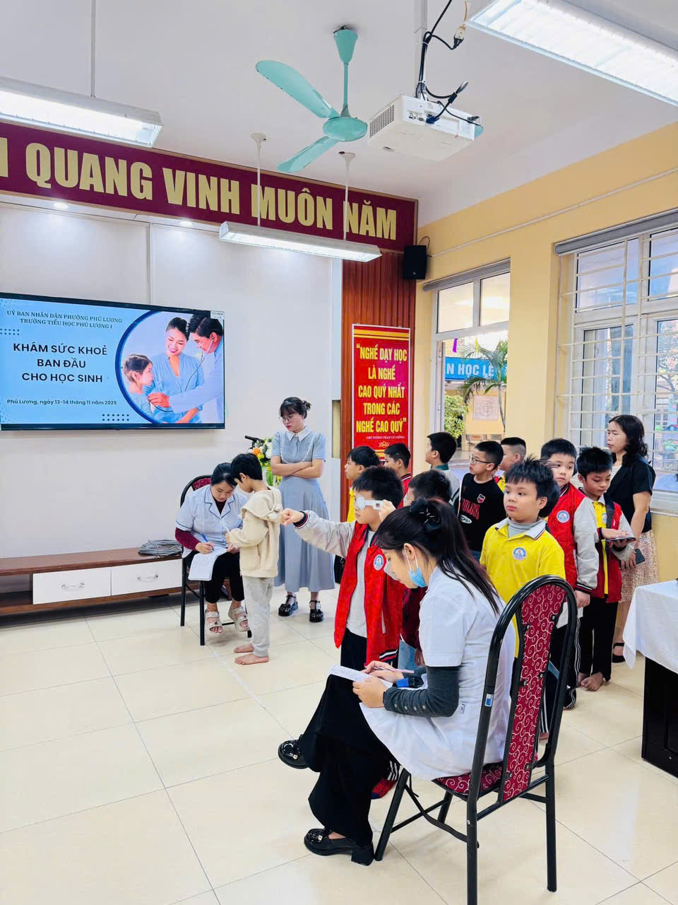 Ngày 13 - 14/11/2025, Trường Tiểu học Phú Lương I tổ chức khám sức khỏe ban đầu cho học sinh. Các con được kiểm tra chiều cao, cân nặng, thị lực, răng miệng và sức khỏe tổng quát.