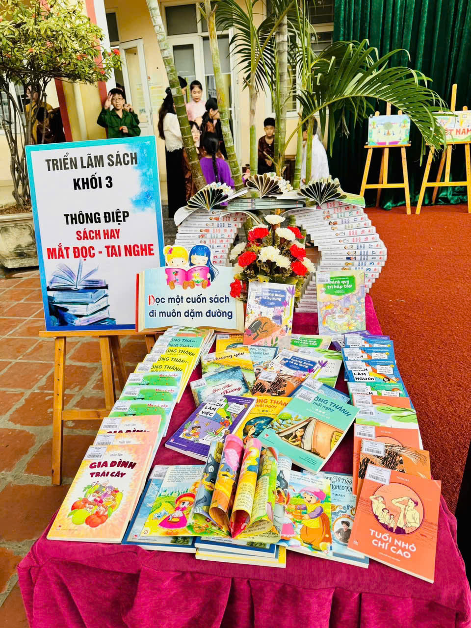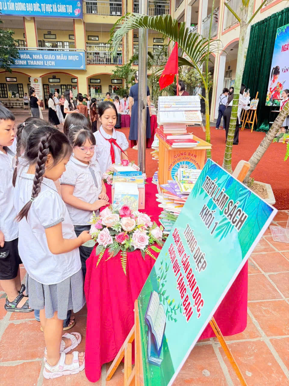 📚 Khu vực triển lãm sách cũng trở thành điểm đến hấp dẫn. Các em say sưa lật từng trang sách, tò mò khám phá những điều mới mẻ, ánh mắt háo hức như đang bước vào một thế giới diệu kỳ không có giới hạn.