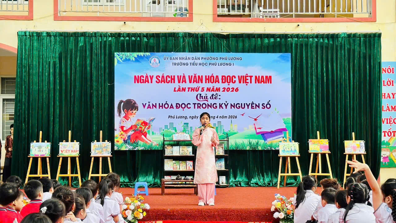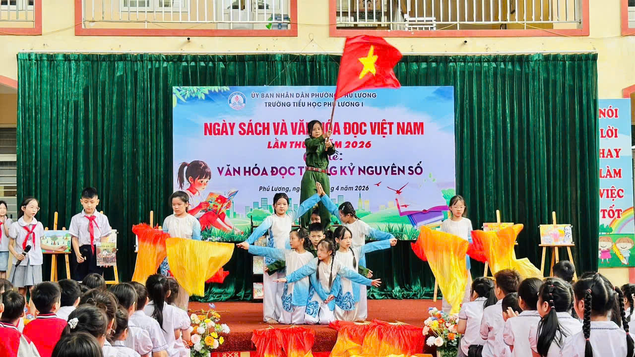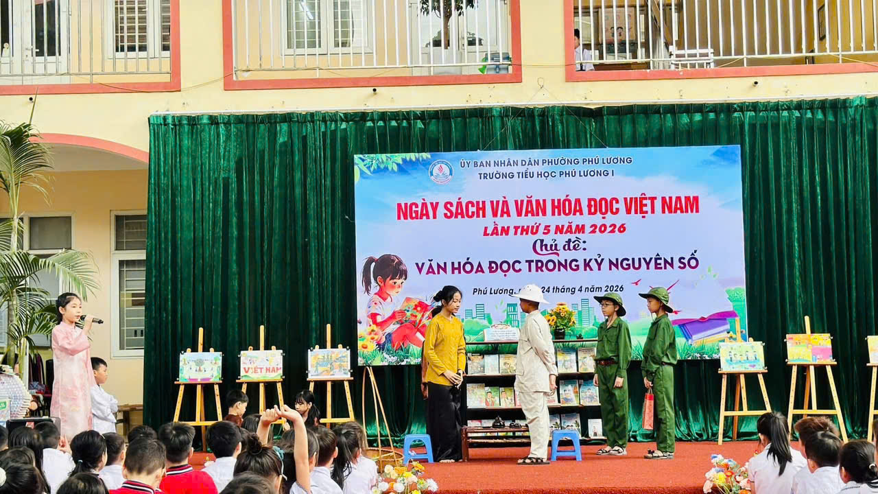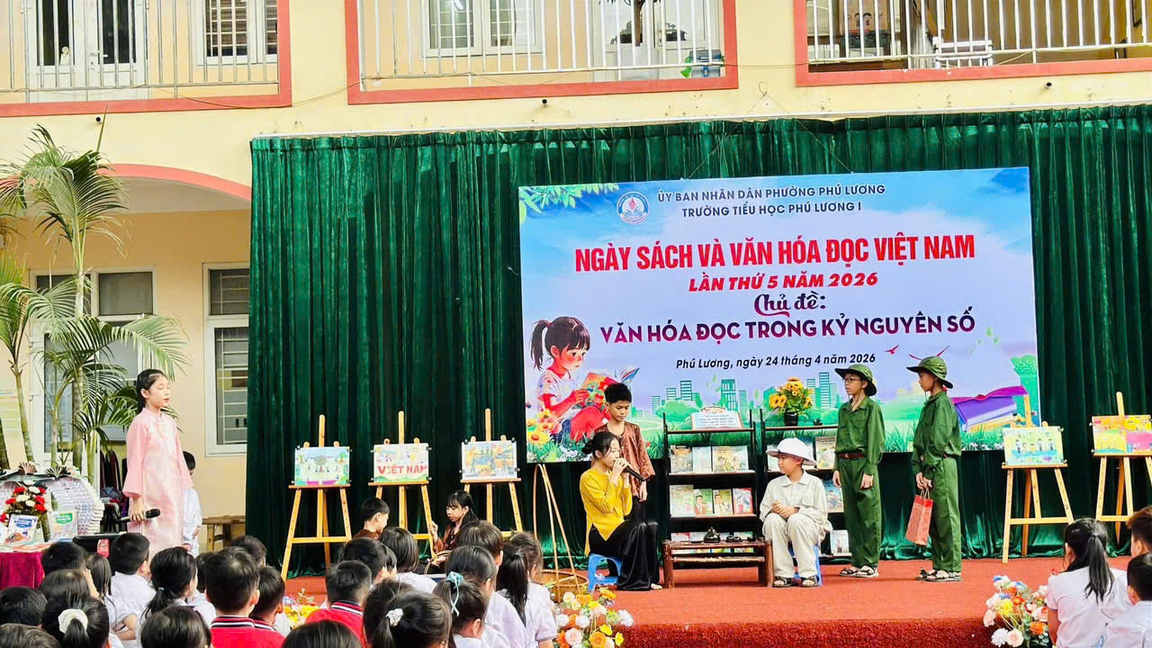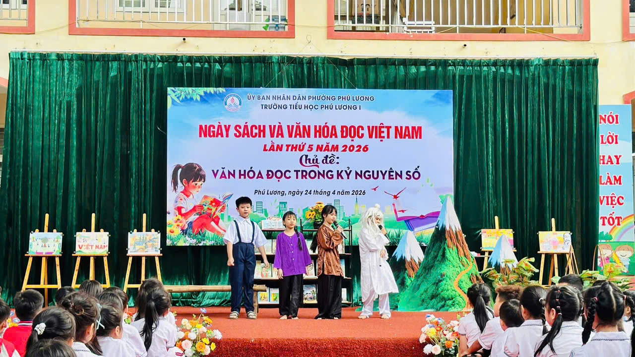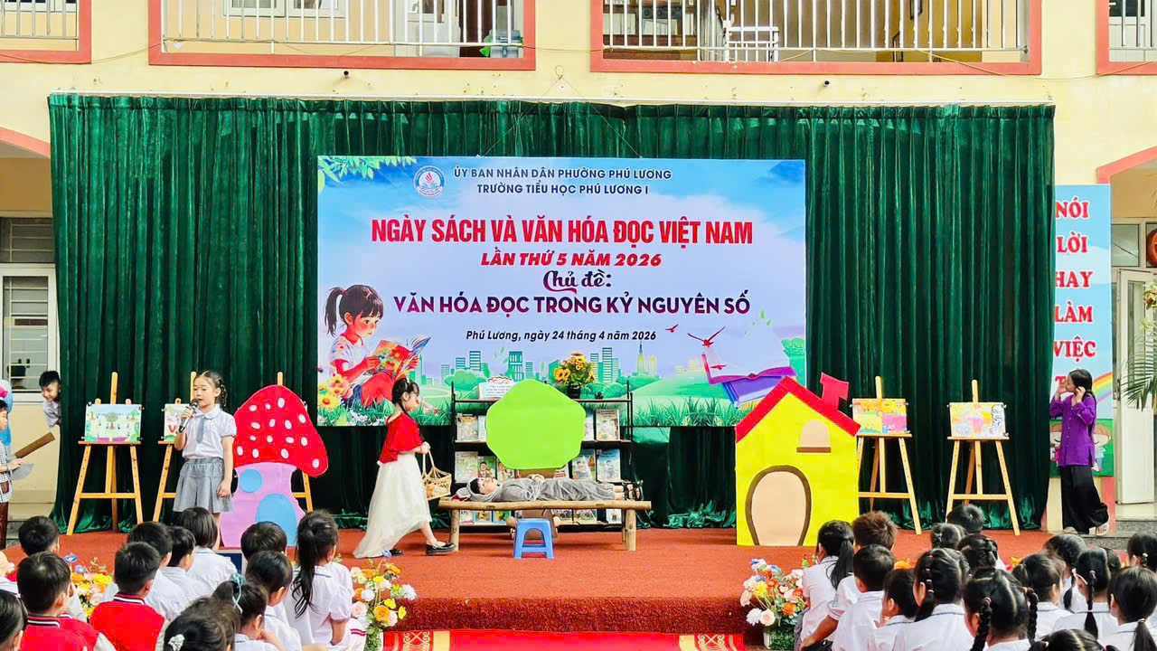 Hòa chung không khí Ngày Sách và Văn hóa đọc Việt Nam, sáng nay ngày 24/4/2026 Trường Tiểu học Phú Lương 1 đã tổ chức chương trình “Ngày sách và văn hoá đọc Việt Nam” với chủ đề: Văn hoá đọc trong kỉ nguyên số đầy ý nghĩa. Mỗi em học sinh không chỉ được vui chơi mà còn được nuôi dưỡng tình yêu với sách theo cách thật tự nhiên và ấm áp.