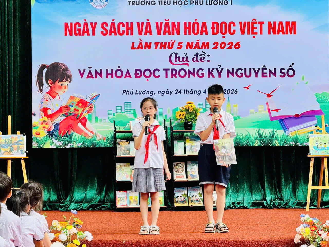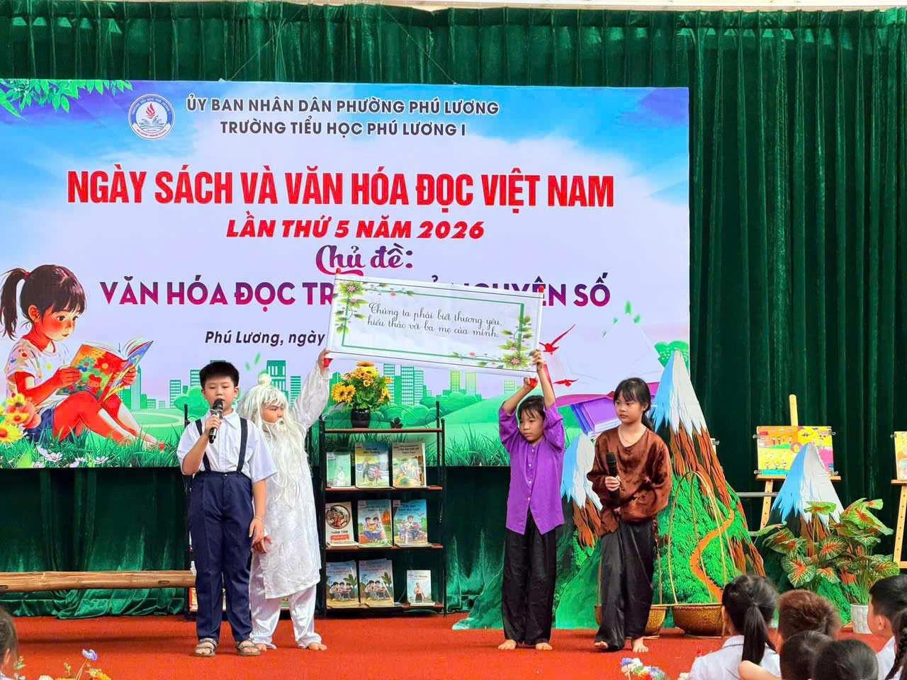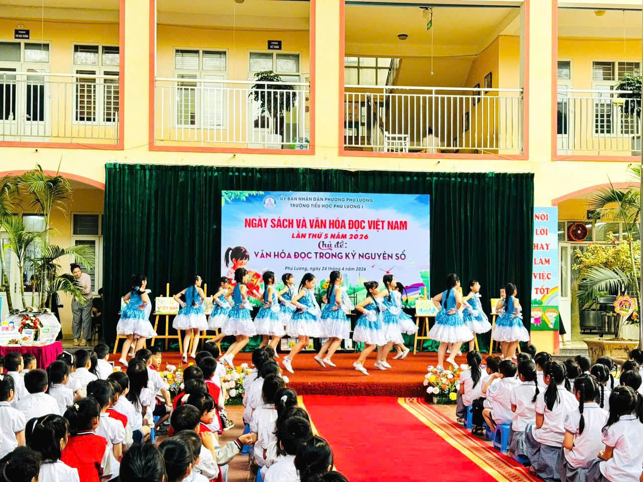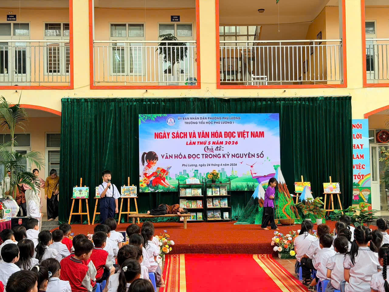 Hòa chung không khí Ngày Sách và Văn hóa đọc Việt Nam, sáng nay ngày 24/4/2026 Trường Tiểu học Phú Lương 1 đã tổ chức chương trình “Ngày sách và văn hoá đọc Việt Nam” với chủ đề: Văn hoá đọc trong kỉ nguyên số đầy ý nghĩa. Mỗi em học sinh không chỉ được vui chơi mà còn được nuôi dưỡng tình yêu với sách theo cách thật tự nhiên và ấm áp.