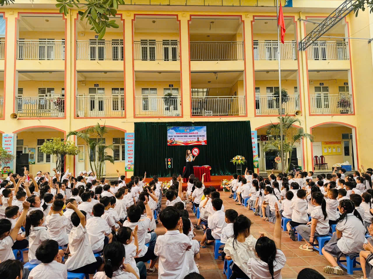 🚦 Mở đầu chương trình là các tiết mục văn nghệ đặc sắc với nội dung tuyên truyền về an toàn giao thông, mang đến không khí tươi vui, hào hứng cho toàn thể học sinh.