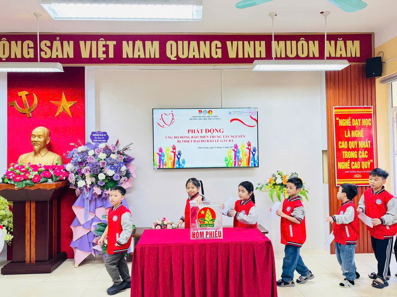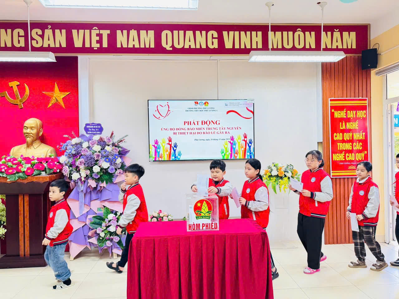 🌈 Những ngày vừa qua, toàn bộ cán bộ, giáo viên, nhân viên và các em học sinh của Trường Tiểu học Phú Lương I đã cùng chung tay quyên góp ủng hộ đồng bào miền Trung – Tây Nguyên bị ảnh hưởng bởi bão lũ. Với tấm lòng sẻ chia và tinh thần hướng về cộng đồng, nhà trường đã quyên góp được 33.702.000 đồng 💗